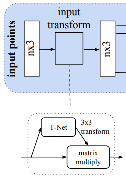 논문에서는 이러한 Affine Transformation matrix를 추정하는 Network를 T-Net이라고 부르며 T-Net 또한 전체 Network와 유사하게 MLP와 Max Pooling으로만 구성되어 있습니다. 이러한 과정을 Point를 Alignment하는 Transform이라고 표현합니다. 유사한 방식으로 Local Feature에도 Alignment를 적용합니다.